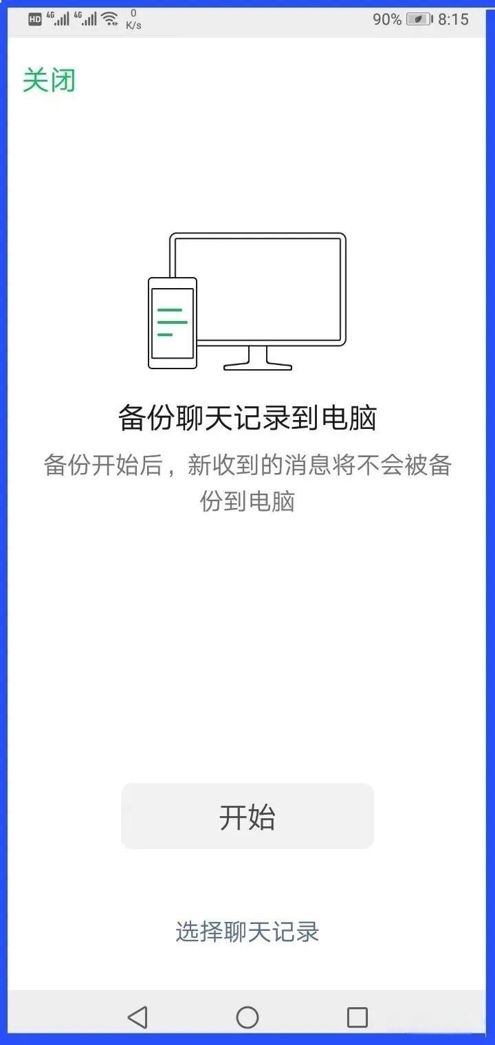 在手机上点击开始即可。上面这些操作就是数据备份的工作。如果哪天想找到聊天记录,就进行相反操作即可。即将数据恢复到手机来查看。